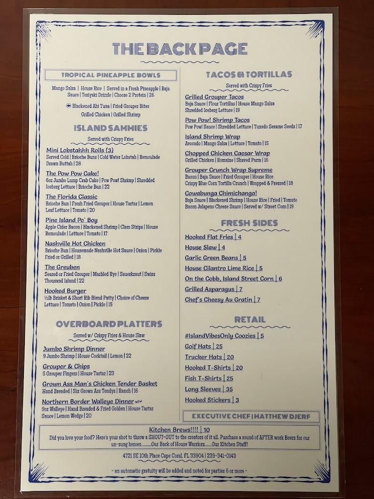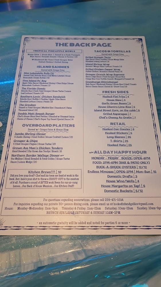 Welcome to Hooked Island Grill in Cape Coral, where fresh seafood meets a vibrant atmosphere! Located at 4721 SE 10th Pl, our grill offers an enticing menu featuring local specialties, excellent cocktails, and delicious desserts, all served in a relaxed, trendy setting. Enjoy our outdoor terrace while savoring a wide selection of beers and happy hour specials. Whether you're stopping by for lunch, dinner, or a late-night bite, our friendly service and accessible facilities ensure a delightful experience for everyone, including wheelchair-friendly options. Come dive into a culinary adventure at Hooked Island Grill!